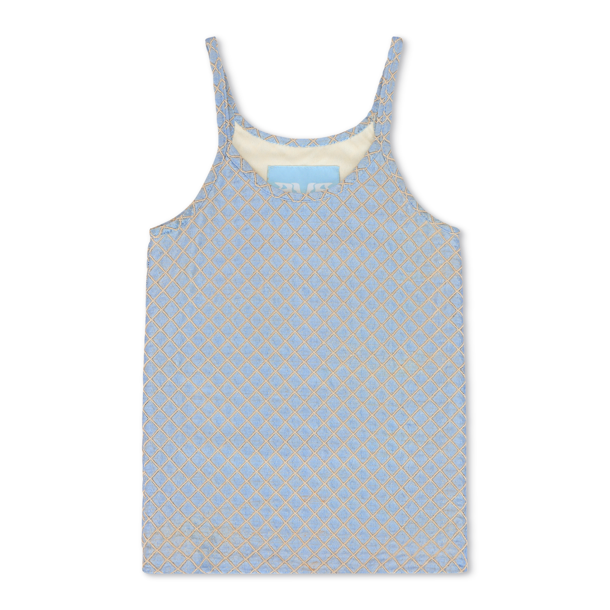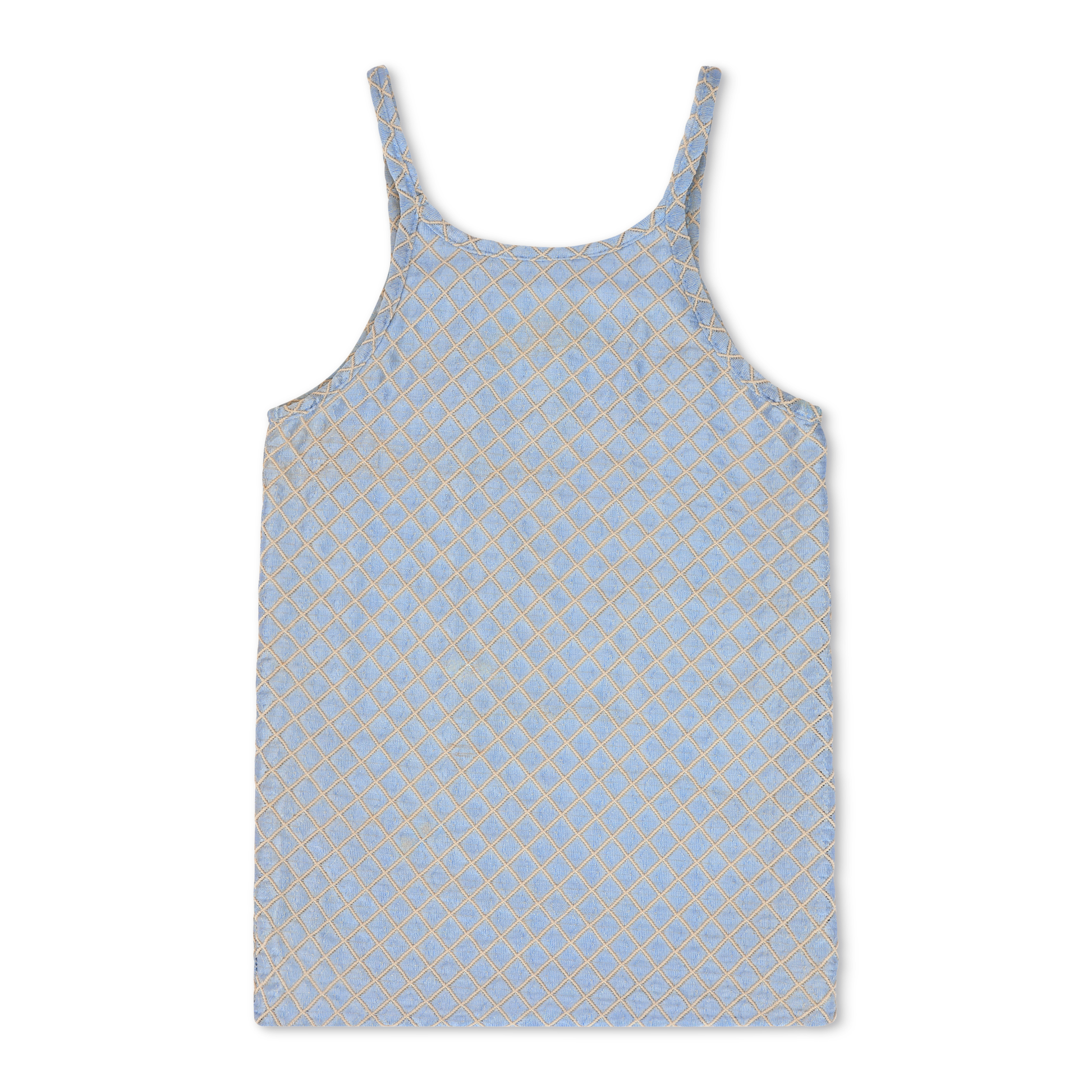 Crafted from a baby blue polyester-satin blend and showcasing a thick waffle threaded texture.