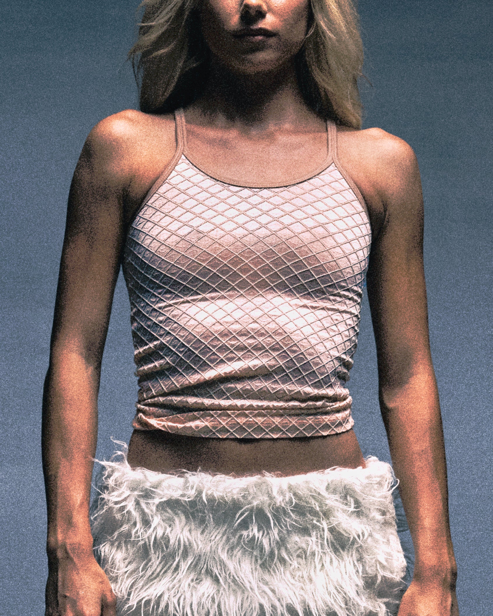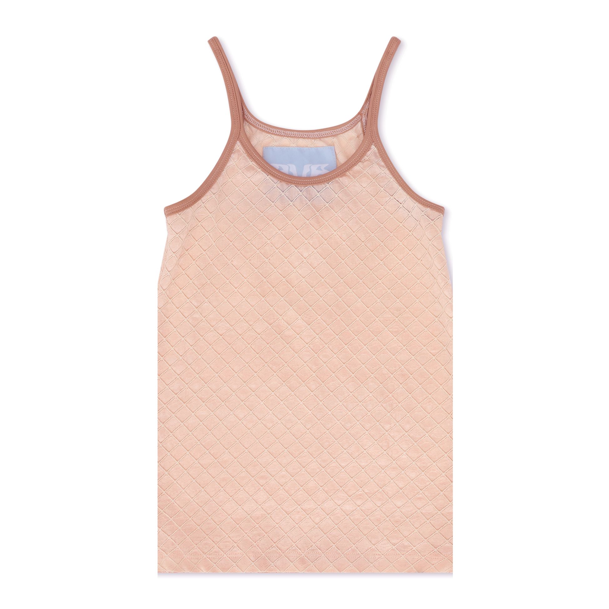 Crafted from a baby pink polyester-satin blend and showcasing a thick waffle threaded texture.